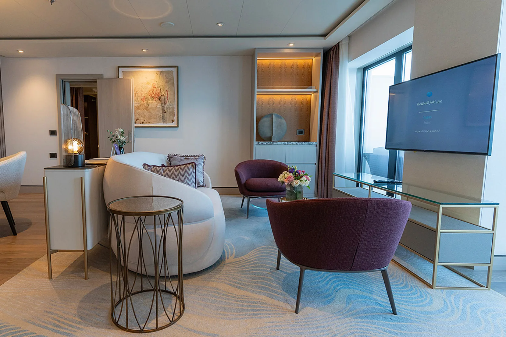Experience luxury at the heart of the sea with AROYA Cruises most premium accommodations by Khuzama. The Royal Villa, Presidential Villa and Signature Suites are designed to offer you an unforgettable stay with its spacious rooms, Remarkably Arabian designs, outdoor areas, and exclusive amenities.